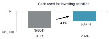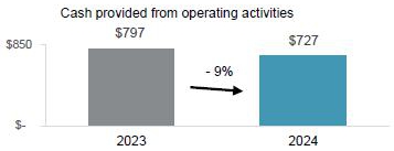 | · | Cash from operating activities decreased $70 million to $727 million. |