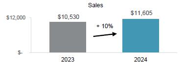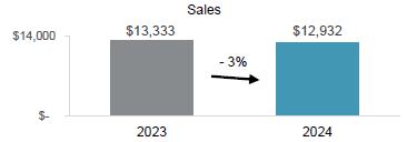 Sales decreased 4% or $408 million to $10.28 billion for the third quarter of 2024 compared to $10.69 billion for the third quarter of 2023 primarily due to: