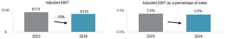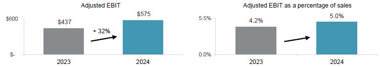 In addition to results presented in accordance with accounting principles generally accepted in the United States of America ["U.S. GAAP"], this report includes the use of Adjusted earnings before interest and taxes ["Adjusted EBIT"], Adjusted EBIT as a percentage of sales, Adjusted diluted earnings per share, and Adjusted Return on Invested Capital [collectively, the "Non-GAAP Measures"]. We believe these Non-GAAP financial measures provide additional information that is useful to investors in understanding our underlying performance and trends through the same financial measures employed by our management. Readers should be aware that Non-GAAP Measures have no standardized meaning under U.S. GAAP and accordingly may not be comparable to the calculation of similar measures by other companies. We believe that Adjusted EBIT, Adjusted EBIT as a percentage of sales, Adjusted diluted earnings per share and Adjusted Return on Invested Capital provide useful information to our investors for measuring our operational performance as they exclude certain items that are not reflective of ongoing operating profit and facilitate a comparison with prior periods. The presentation of any Non-GAAP Measures should not be considered in isolation or as a substitute for our related financial results prepared in accordance with U.S. GAAP. Non-GAAP financial measures are presented together with the most directly comparable U.S. GAAP financial measure, and a reconciliation to the most directly comparable U.S. GAAP financial measure, can be found in the "Non-GAAP Financial Measures Reconciliation" section of this MD&A.