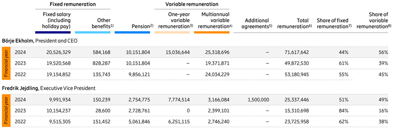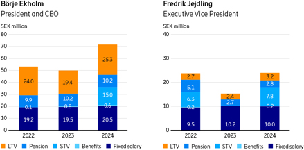 2) | Variable remuneration for the President and CEO and to the Executive Vice President includes applicable STV and LTV. For the Company’s employees, variable remuneration includes short-term and long-term variable remuneration. For the sake of comparison, variable remuneration represents figures paid during the financial year. This is because performance reviews and long-term variable remuneration programs for other employees with performance periods expiring in fiscal year 2024 have not yet been completed. |