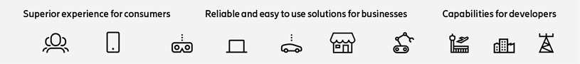– Technology leadership for performance, security, and sustainability at lowest TCO across RAN, Core and OSS/BSS – Lead industry shift to programmable, automated cloud-native networks and operations, and advanced network services | Wireless networks – Pre-packaged solutions– Leading reliability, security, and operations | Communication platform – Accelerate the world’s ability to connect – Global network platform | ||||||