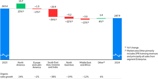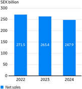 | – | Net sales decreased by –6% to SEK 247.9 (263.4) billion impacted by a sales decline in Networks of –8%. Organic sales declined by –5%. |