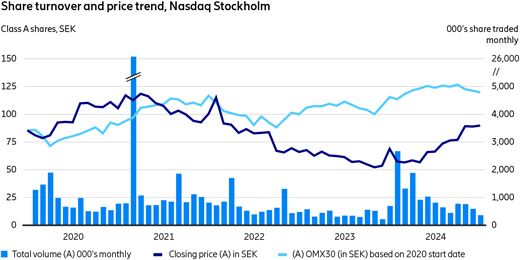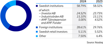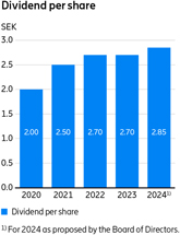 | – | The Board of Directors proposes a dividend for 2024 of SEK 2.85 (2.70) per share to the Annual General Meeting. |