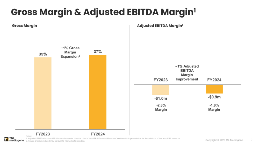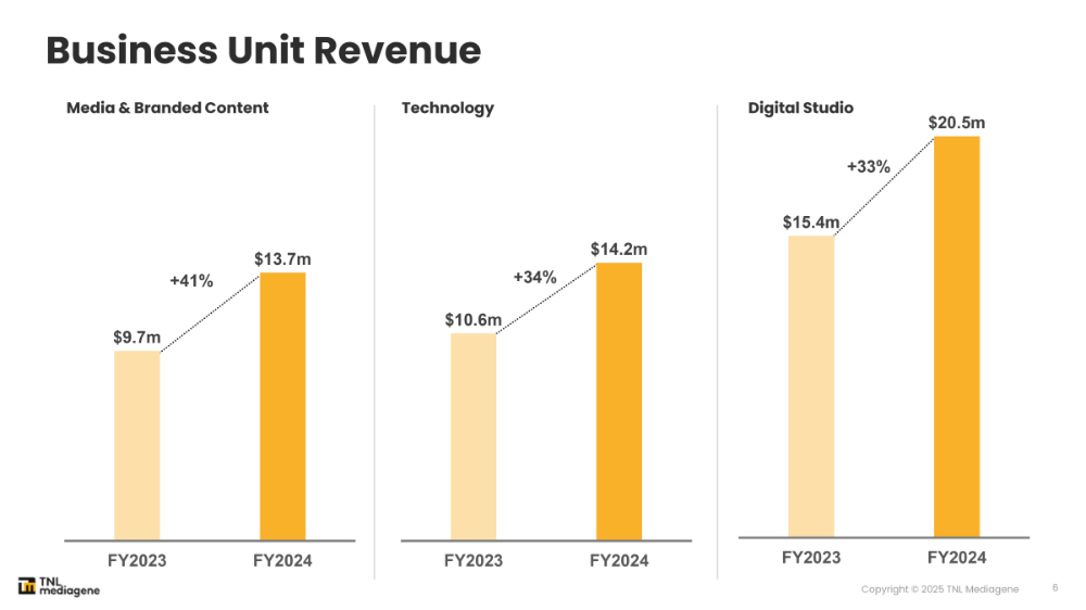 FY2023 FY2024 $10.6m $14.2m FY2023 FY2024 $9.7m $13.7m FY2023 FY2024 Business Unit Revenue Media & Branded Content Technology Digital Studio 6 Copyright © 2025 TNL Mediagene $20.5m +33% $15.4m +41% +34%