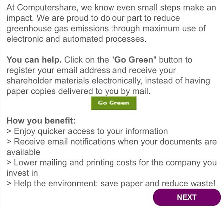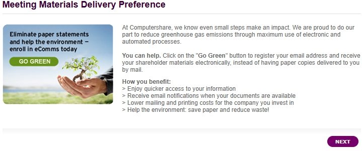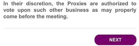 Note: If you do not enter a vote for a proposal, clicking “NEXT” will automatically register a vote of “For” for that proposal. Thank you for your understanding.