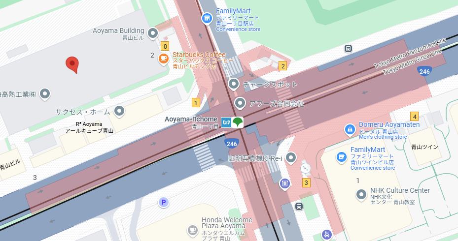 Direct access from Exit 0 of Aoyama-itchome Station (G-04, Z-03, E-24), served by the Tokyo Metro Ginza Line, Hanzomon Line, and Toei Oedo Line