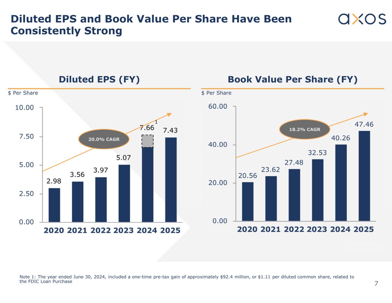 6 Return on Equity = 16.85% Return on Assets = 1.85% Consolidated Fiscal Fourth Quarter 2025 Highlights Compared with Fiscal Fourth Quarter 2024 8% 8% 6% 7% Asset Growth Deposit Growth Net Income Diluted EPS $ Millions $ Millions $ Millions $ Diluted EPS Q4 2025