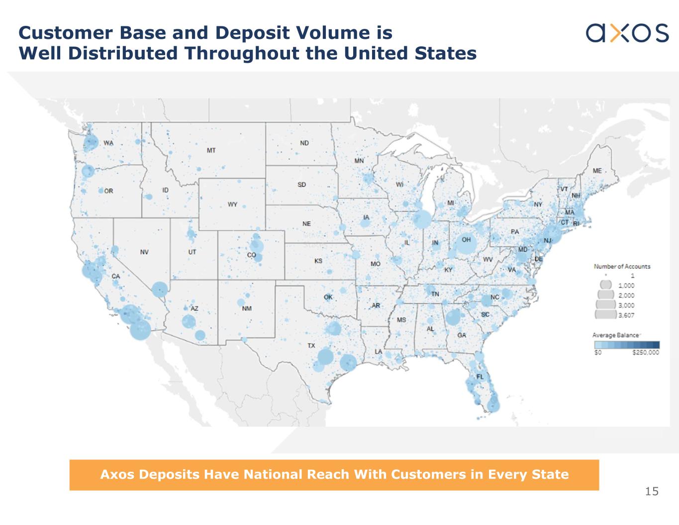 15 Axos Deposits Have National Reach With Customers in Every State Customer Base and Deposit Volume is Well Distributed Throughout the United States