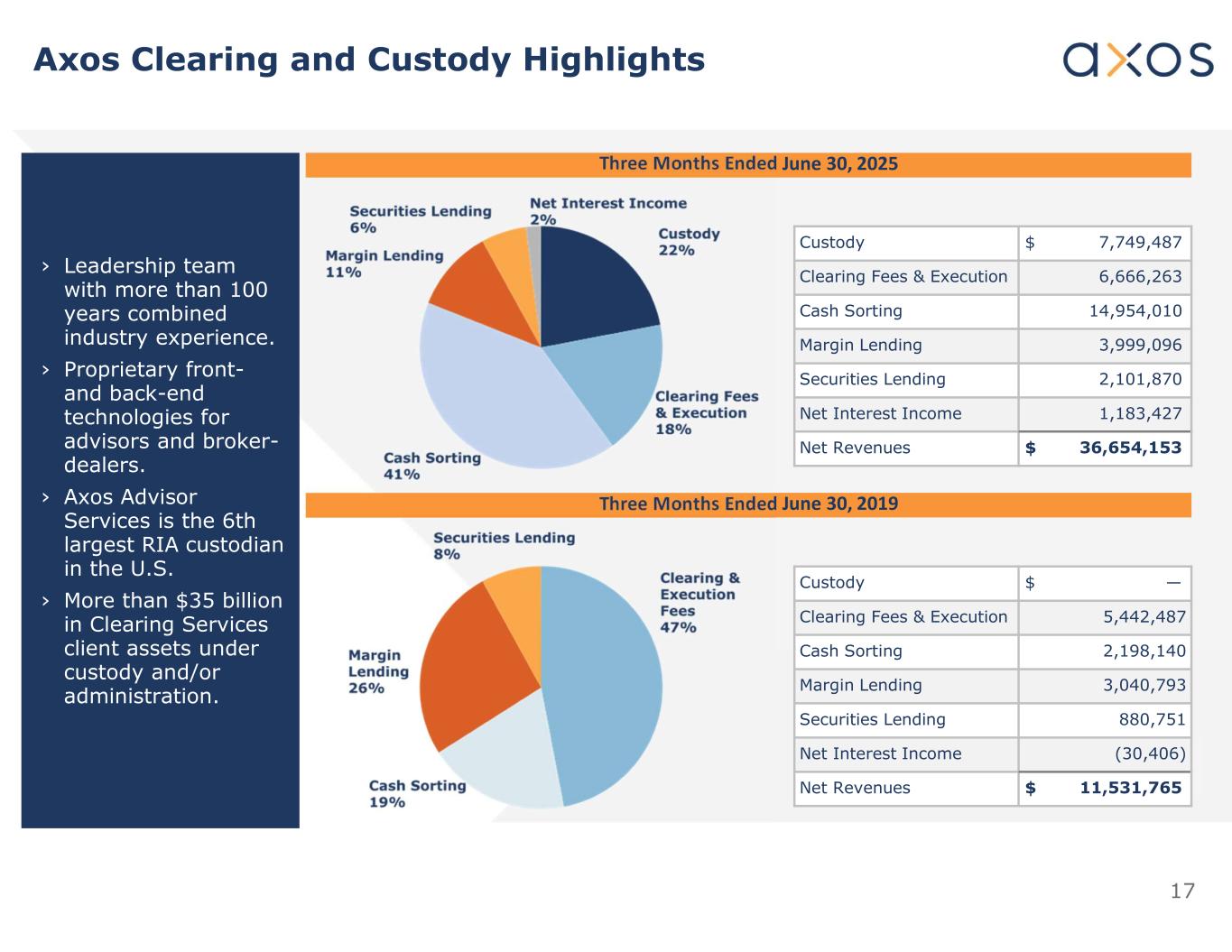 16 Non-Interest Income Growth and Diversification Year Ended June 30, 2019 Three Months Ended June 30, 2025 Securities Segment Fee Income2 (6/2019 – 6/2025) = 556% Total Non-Interest Income = $82.9 million Total Non-Interest Income = $165.1 million1 Note 1: Represents annualized quarterly June 30, 2025 data Note 2: Includes advisory fee income from AAS business, which was acquired August 2, 2021