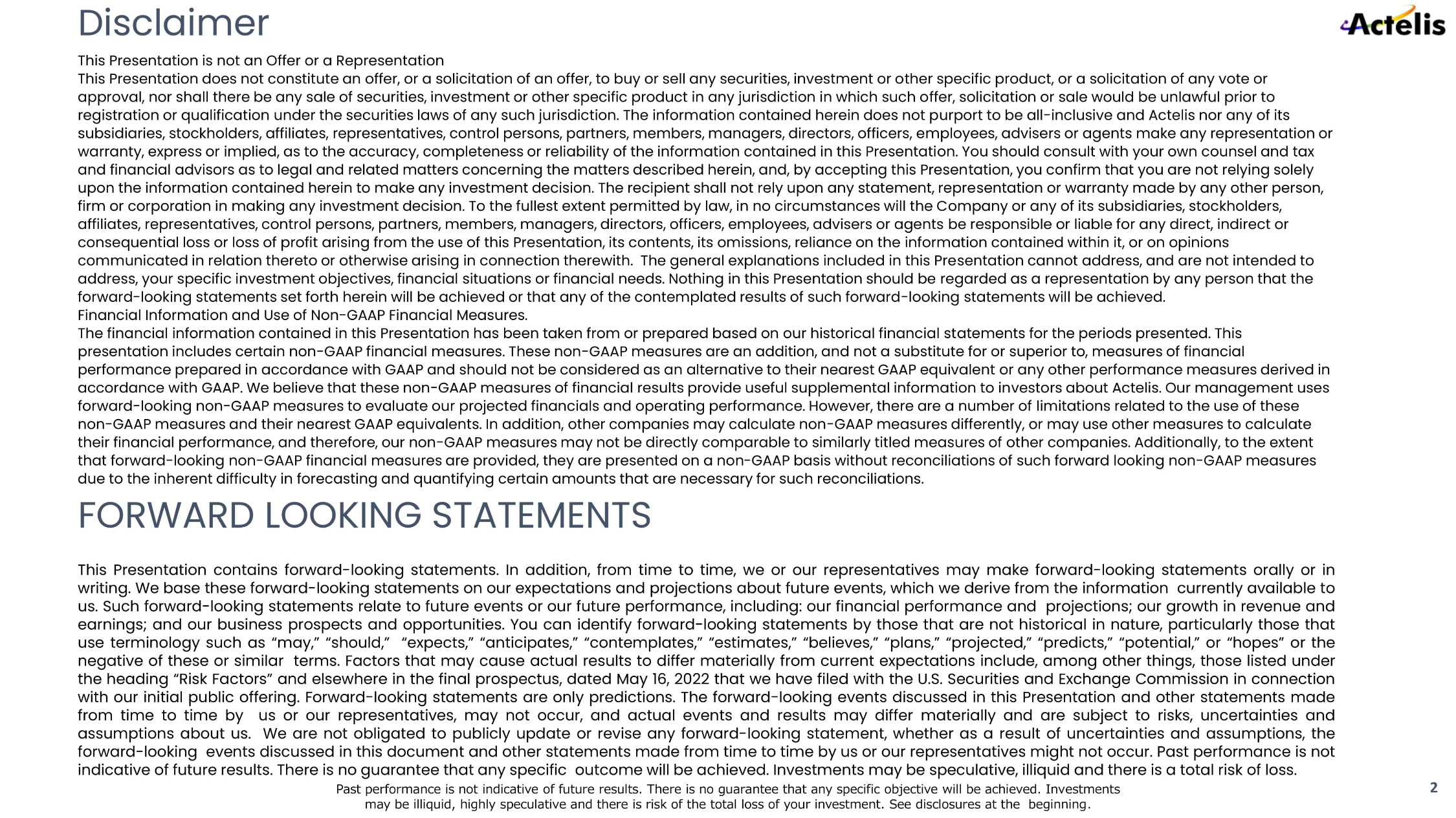 Disclaimer This Presentation is not an Offer or a Representation This Presentation does not constitute an offer, or a solicitation of an offer, to buy or sell any securities, investment or o the r specific product, or a solicitation of any vote or approval, nor shall there be any sale of securities, investment or other specific product in any jurisdiction in which such o ffe r, solicitation or sale would be unlawful prior to registration or qualification under the securities laws of any such jurisdiction. The information contained herein does not p urp ort to be all - inclusive and Actelis nor any of its subsidiaries, stockholders, affiliates, representatives, control persons, partners, members, managers, directors, officers, e mpl oyees, advisers or agents make any representation or warranty, express or implied, as to the accuracy, completeness or reliability of the information contained in this Presentati on. You should consult with your own counsel and tax and financial advisors as to legal and related matters concerning the matters described herein, and, by accepting this Presen tat ion, you confirm that you are not relying solely upon the information contained herein to make any investment decision. The recipient shall not rely upon any statement, repre sen tation or warranty made by any other person, firm or corporation in making any investment decision. To the fullest extent permitted by law, in no circumstances will the C omp any or any of its subsidiaries, stockholders, affiliates, representatives, control persons, partners, members, managers, directors, officers, employees, advisers or agents be responsible or liable for any direct, indirect or consequential loss or loss of profit arising from the use of this Presentation, its contents, its omissions, reliance on the inf ormation contained within it, or on opinions communicated in relation thereto or otherwise arising in connection therewith. The general explanations included in this Pre sen tation cannot address, and are not intended to address, your specific investment objectives, financial situations or financial needs. Nothing in this Presentation should be re garded as a representation by any person that the forward - looking statements set forth herein will be achieved or that any of the contemplated results of such forward - looking sta tements will be achieved. Financial Information and Use of Non - GAAP Financial Measures. The financial information contained in this Presentation has been taken from or prepared based on our historical financial st ate ments for the periods presented. This presentation includes certain non - GAAP financial measures. These non - GAAP measures are an addition, and not a substitute for or superior to, measures of financial performance prepared in accordance with GAAP and should not be considered as an alternative to their nearest GAAP equivalent or any other performance measures derived in accordance with GAAP. We believe that these non - GAAP measures of financial results provide useful supplemental information to in vestors about Actelis. Our management uses forward - looking non - GAAP measures to evaluate our projected financials and operating performance. However, there are a number of limitations related to the use of these non - GAAP measures and their nearest GAAP equivalents. In addition, other companies may calculate non - GAAP measures differently, or may use other measures to calculate their financial performance, and therefore, our non - GAAP measures may not be directly comparable to similarly titled measures of other companies. Additionally, to the extent that forward - looking non - GAAP financial measures are provided, they are presented on a non - GAAP basis without reconciliations of such forward looking non - GAAP measures due to the inherent difficulty in forecasting and quantifying certain amounts that are necessary for such reconciliations. Past performance is not indicative of future results. There is no guarantee that any specific objective will be achieved. Inv est ments may be illiquid, highly speculative and there is risk of the total loss of your investment. See disclosures at the beginning . 2 This Presentation contains forward - looking statements. In addition, from time to time, we or our representatives may make forwar d - looking statements orally or in writing. We base these forward - looking statements on our expectations and projections about future events, which we derive from the information currently available to us. Such forward - looking statements relate to future events or our future performance, including: our financial performance and projections; our growth in revenue and earnings; and our business prospects and opportunities. You can identify forward - looking statements by those that are not histor ical in nature, particularly those that use terminology such as “may,” “should,” “expects,” “anticipates,” “contemplates,” “estimates,” “believes,” “plans,” “projec ted ,” “predicts,” “potential,” or “hopes” or the negative of these or similar terms. Factors that may cause actual results to differ materially from current expectations inc lud e, among other things, those listed under the heading “Risk Factors” and elsewhere in the final prospectus, dated May 16, 2022 that we have filed with the U.S. Securit ies and Exchange Commission in connection with our initial public offering. Forward - looking statements are only predictions. The forward - looking events discussed in this Presentation and other statements made from time to time by us or our representatives, may not occur, and actual events and results may differ mat erially and are subject to risks, uncertainties and assumptions about us. We are not obligated to publicly update or revise any forward - looking statement, whether as a result of u ncertainties and assumptions, the forward - looking events discussed in this document and other sta