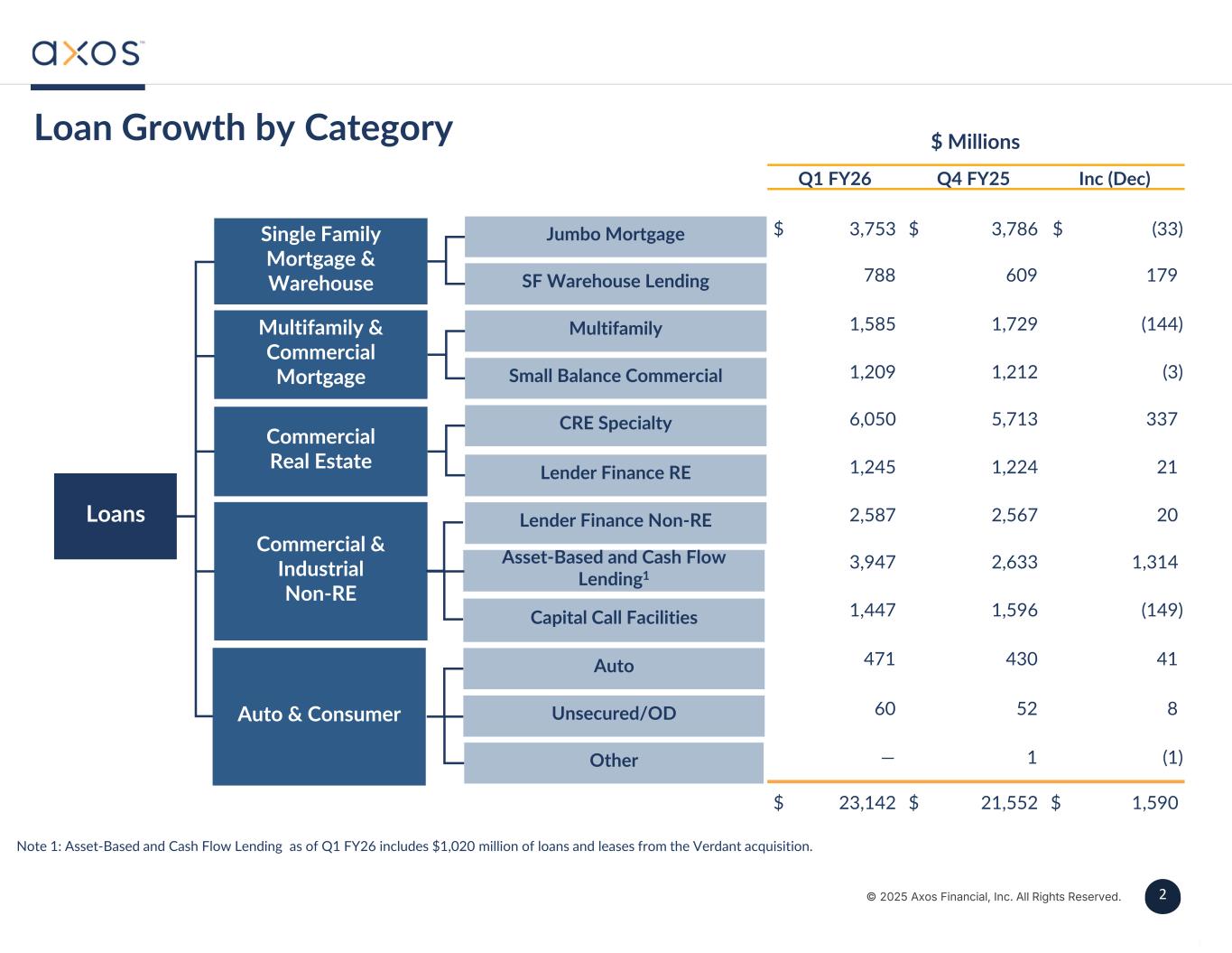 Axos Q1 Fiscal 2026 Earnings Supplement NYSE: AXOctober 30, 2025
